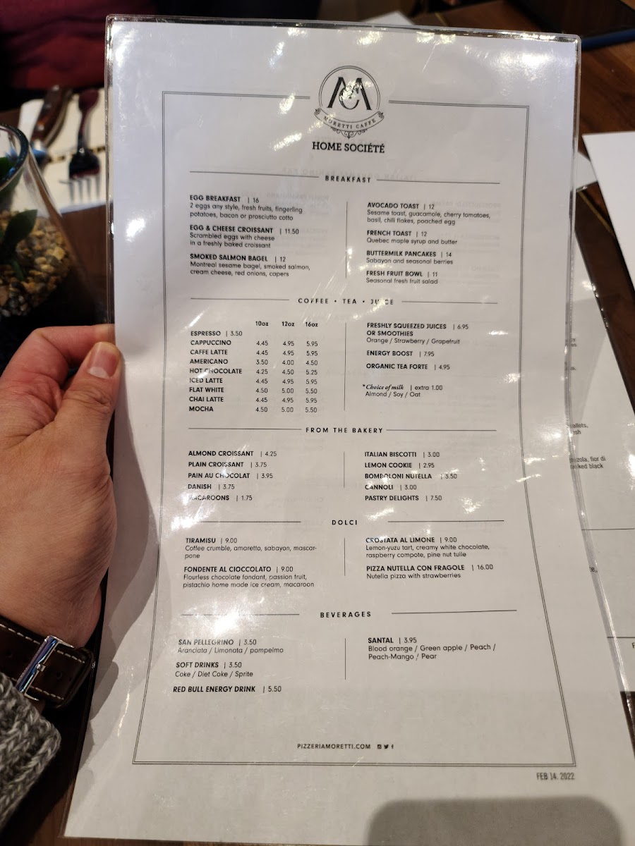 Moretti Caffe @Home Societe Menu